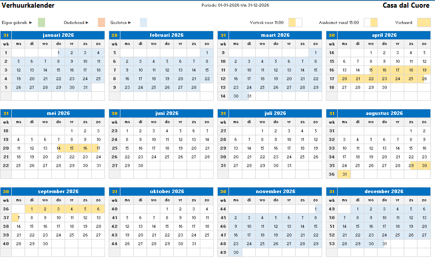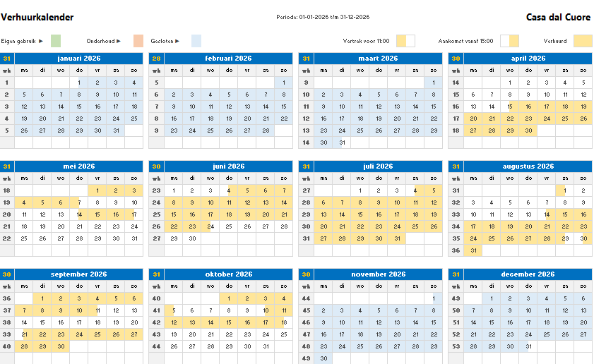 Als je een periode wilt reserveren, dan kan dat via onze e-mail: info@casadalcuore.com